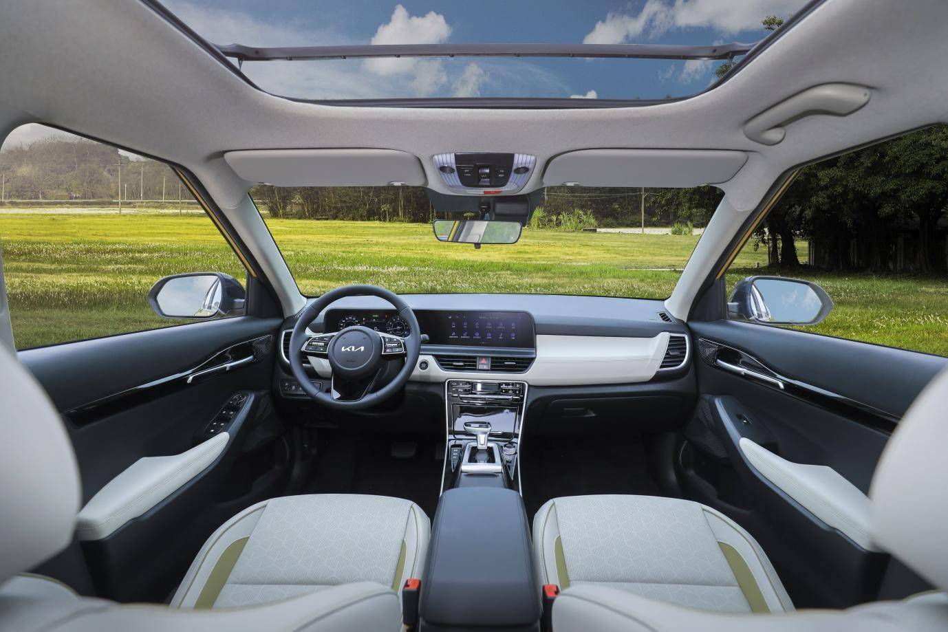 內飾方面,新車配備雙10.25英寸智能一體式顯示屏,并內置Kia Connect娛樂系統,提供語音控制、實時在線導航、遠程控制、車家互聯、在線娛樂等互聯功能,實現信息實時共享與交互,還支持遠程控制車輛、查詢車輛狀態等。另外車內采用大量鋼琴漆進行裝飾,提升了車內精致感。細節上可以看到新車空調控制區保留了大量物理按鍵,下方配備比較大的儲物空間,另外還類似游艇式擋把造型。