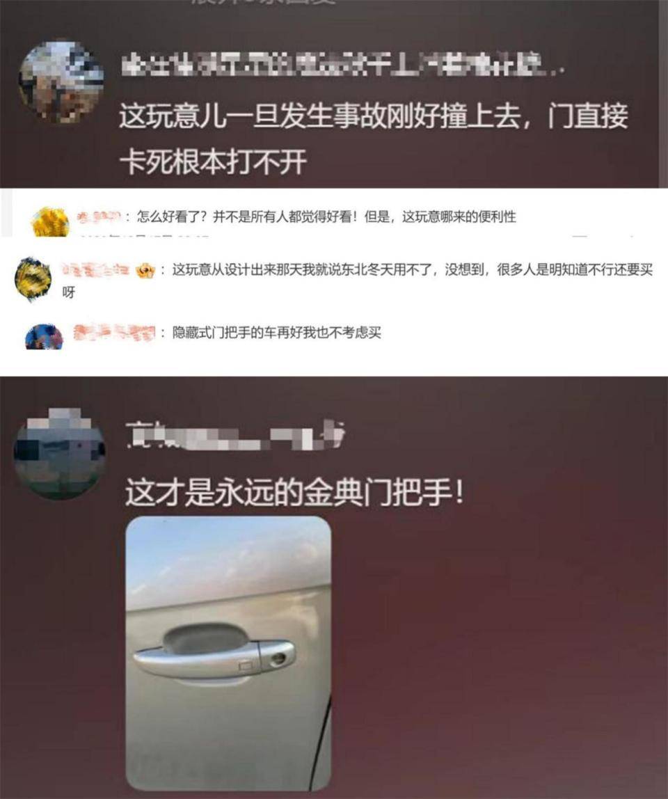 其次,部分隱藏式門把手在冬天會被凍住無法彈出,或者斷電后無法從外面開門的隱患。但即便是傳統門把手,也存在碰撞之后打不開車門的可能。所以門把手長什么樣,跟是否安全,沒法直接劃等號,關鍵要看安全冗余有沒有設計得足夠充分。