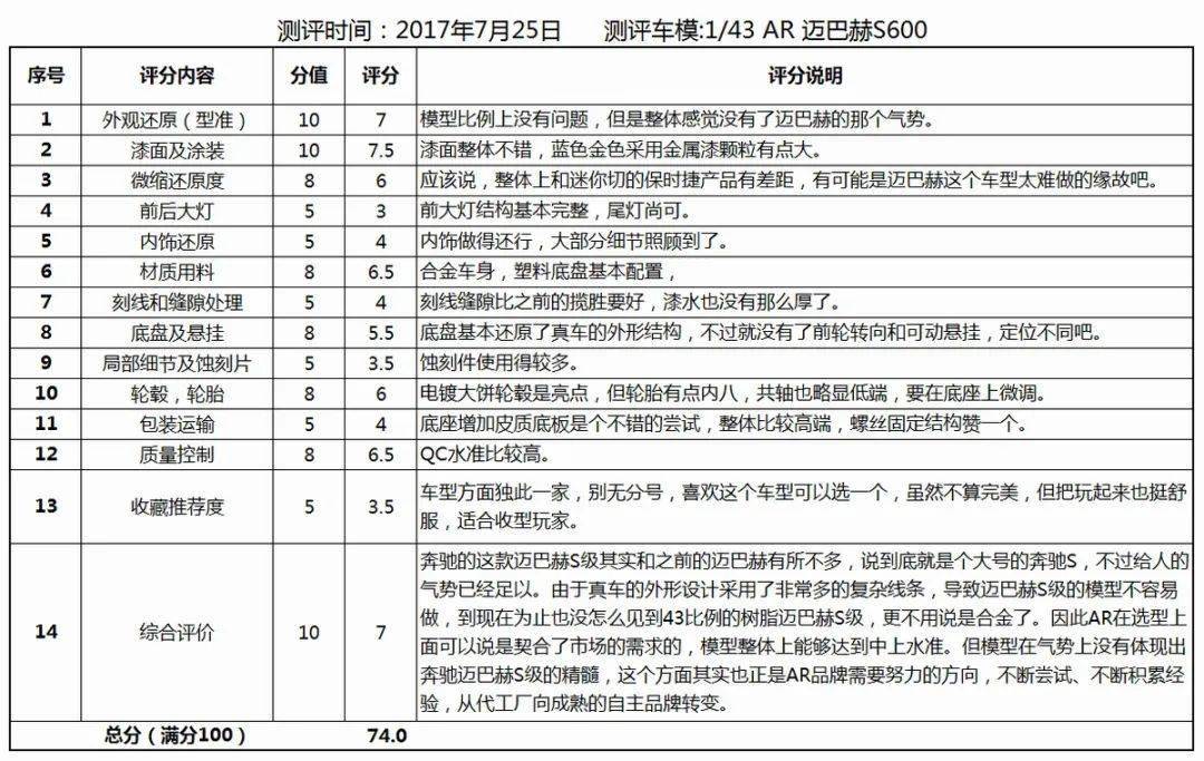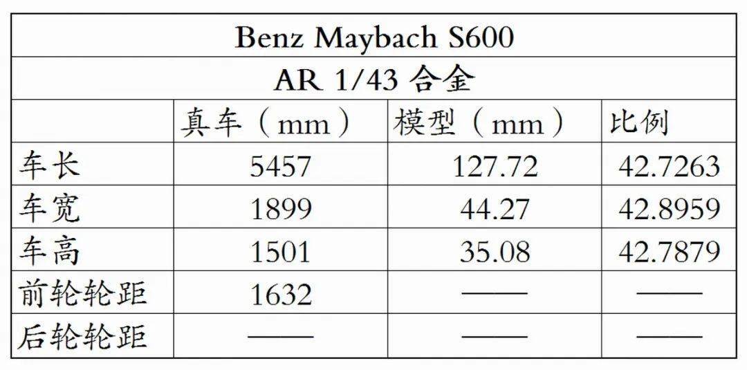 我們認真測量了模型的長寬高,并和真車進行了比較,可以看出這款模型的長寬高與真車比較的縮小比例都很接近43。
