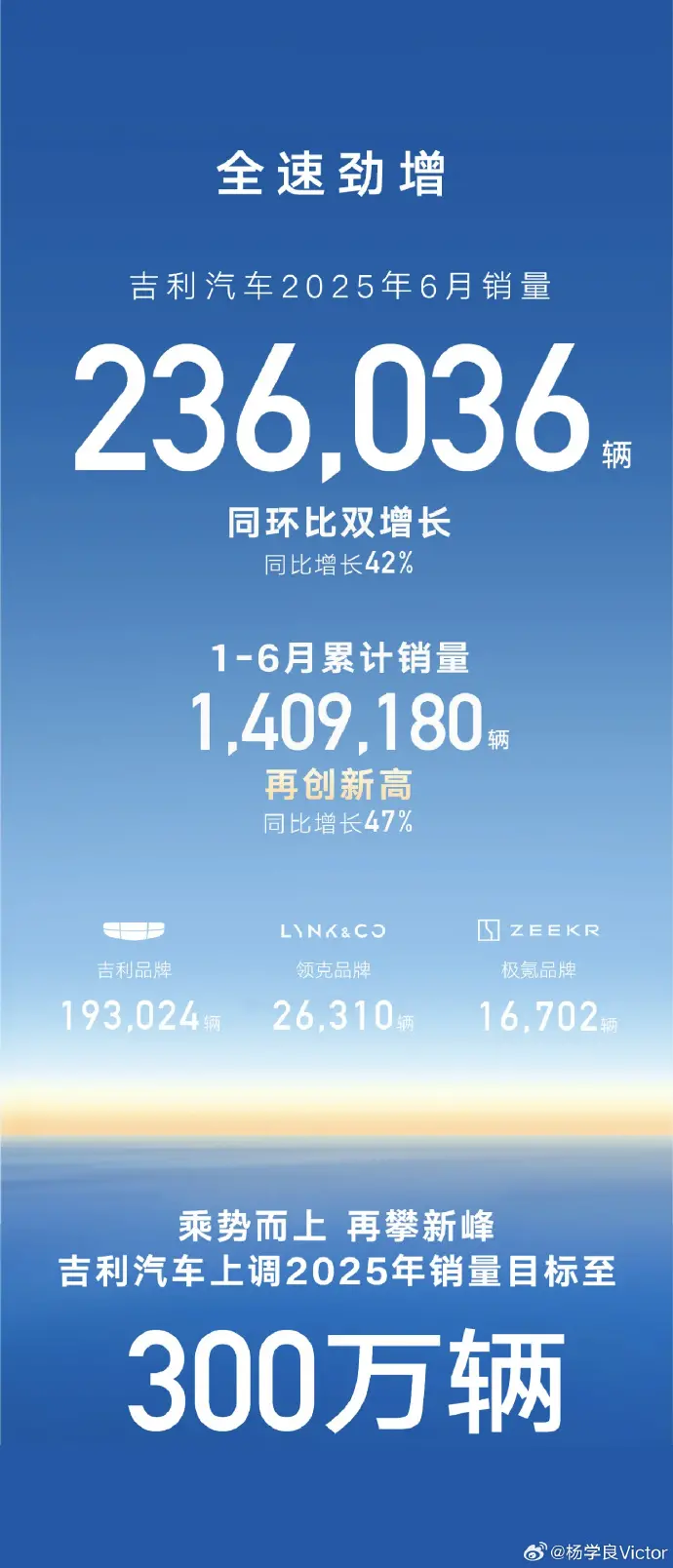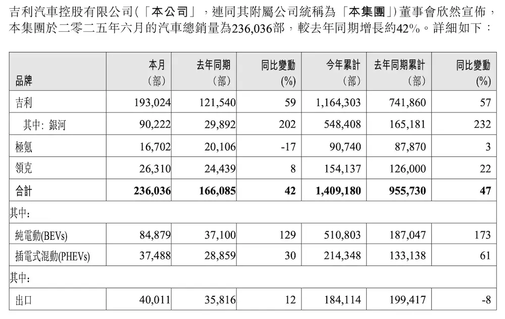 吉利在今年上半年賣出了141萬輛,其中新能源賣了725151輛,占了一半多。