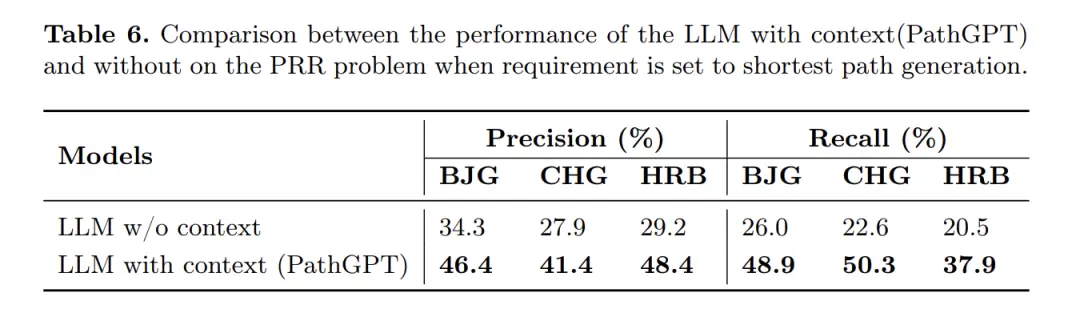 結(jié)果顯示,PathGPT在生成「最快路徑」時(shí),精確率和召回率雖然比一些傳統(tǒng)機(jī)器學(xué)習(xí)模型略低(比如在哈爾濱數(shù)據(jù)集上,最快路徑精確率48.4%),但它有個(gè)絕殺技——能處理那些沒(méi)提前訓(xùn)練過(guò)的奇葩需求。