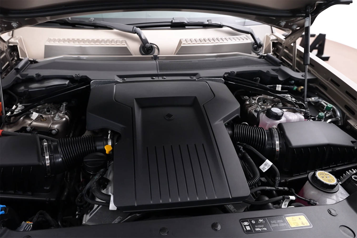 關(guān)于動(dòng)力以及越野信息,它配備4.4T V8發(fā)動(dòng)機(jī),超增壓模式釋放800牛·米超大扭矩,讓這個(gè)大家伙零百加速只需要4秒;越野關(guān)鍵指標(biāo),接近角40.2°,、離去角42.8°,涉水深度1000mm;雙腔三閥空懸配主動(dòng)懸掛,能快速修正俯仰和側(cè)傾姿態(tài);6D智能動(dòng)態(tài)底盤非常復(fù)雜,它將液壓互聯(lián)阻尼器、高度可調(diào)空氣彈簧和俯仰控制系統(tǒng)結(jié)合在一起,并且用半主動(dòng)防側(cè)傾系統(tǒng)取代了傳統(tǒng)的防側(cè)傾桿。