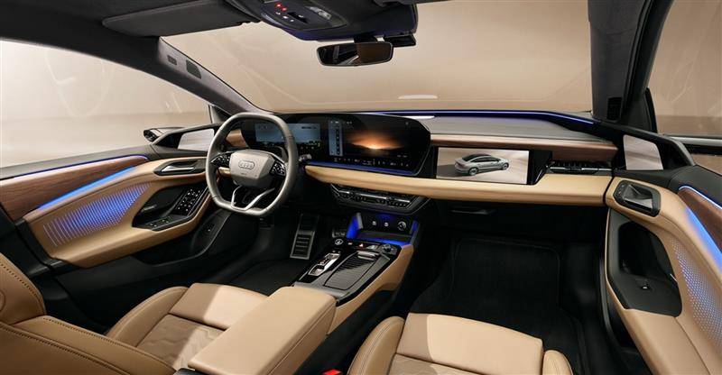 內(nèi)飾部分,A6L e-tron將配備由11.9英寸虛擬座艙儀表屏+14.5英寸MMI中控屏構(gòu)建的高清曲面一體屏,以及帶防窺技術(shù)的10.9英寸副駕娛樂屏+88英寸第二代AR-HUD增強(qiáng)現(xiàn)實平視顯示系統(tǒng)。除了四塊大屏外,新車還將配備專門針對中國市場開發(fā)的專屬車機(jī)系統(tǒng)。這套全新的車機(jī)系統(tǒng)除了有全新的交互界面以及動效顯示外,還深度整合AI語音大模型。用戶可與車機(jī)進(jìn)行連續(xù)對話、可見即可說式的語音指令控車。此外,多種熱門中國本地化APP也實現(xiàn)了內(nèi)建,可滿足用戶辦公、觀影聽歌甚至KTV的需求。另外,用戶還可以通過有線和無線兩種方式實現(xiàn)手機(jī)與車機(jī)的連通。