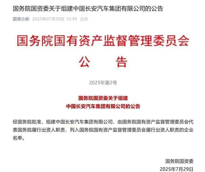 目前國務院國資委網站的央企名錄已經完成更新,中國長安汽車集團正式入列,序號為73。這也是繼新增的中國雅江集團之后,由國務院國資委直接管理的第100家央企。