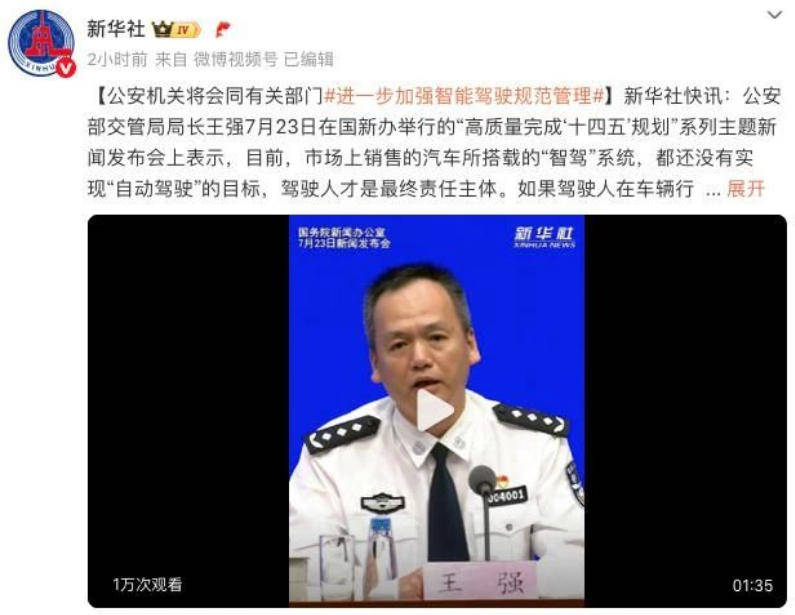 同時在7月23日,國務(wù)院新聞辦舉行新聞發(fā)布會,公安部相關(guān)負責人強調(diào),目前國內(nèi)市場汽車搭載的 " 智駕 " 系統(tǒng)都不具備 " 自動駕駛 " 功能,都還暫時停留在輔助駕駛階段,現(xiàn)階段輔助駕駛不等于自動駕駛,駕駛?cè)嗽隈{駛過程中一旦 " 脫手脫眼 ",可能面臨嚴重交通安全隱患和法律風險,包括民事賠償、行政處罰和刑事追責三重法律風險。也就是說,由系統(tǒng)輔助駕駛?cè)藖韴?zhí)行一些動態(tài)駕駛的任務(wù),車輛依然需要人來操控,駕駛?cè)瞬攀亲罱K的責任主體。