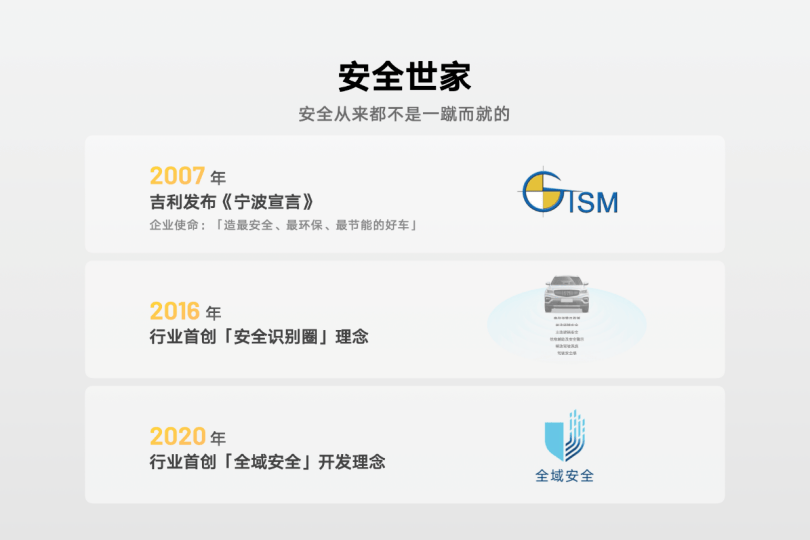 在新汽車的浪潮下,吉利的安全技術(shù)不斷推陳出新,從“安全識(shí)別圈”理念到“全域安全”開發(fā)體系,吉利的安全體系逐漸延伸到了更廣闊的領(lǐng)域。從生命安全到隱私安全,吉利的安全設(shè)計(jì)早已不再局限于傳統(tǒng)的碰撞防護(hù),更擴(kuò)展到了全方位的安全保護(hù)。這種從事后反應(yīng)到全程防護(hù)的深刻洞察,使吉利在安全技術(shù)上始終走在行業(yè)前沿。