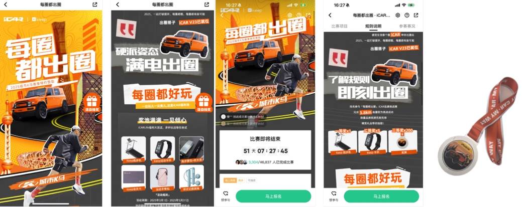 基于年輕人群對健康生活方式與科技出行的雙重追求,汽車與運動生態領導者Keep聚焦泛運動圈層,通過Keep億級運動用戶場景滲透,以「每圈都出圈」話題打通線上運動挑戰賽+線下賽事IP「城市K馬」雙鏈路,實現品牌價值觀深度傳遞。