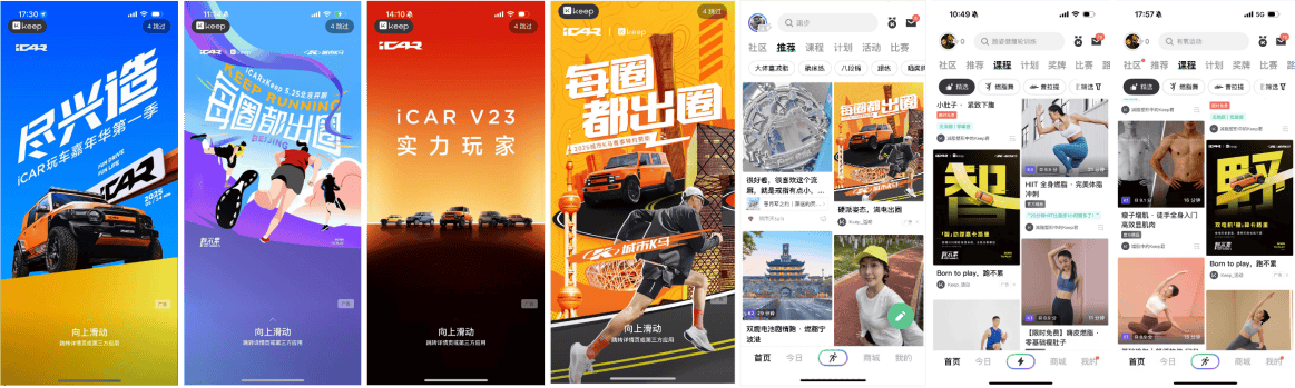 3、 Keep站內硬廣全域用戶觸達,精準導流活動頁面,以“挑戰目標+獎品激勵”為核心,引導用戶跳轉iCAR小程序,實現品牌留資獲客目標;