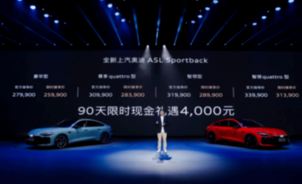 而最讓人期待的,莫過于最終的價格,全新 A5L Sportback售價 25.99萬元起,疊加4000元限時現金禮遇,實際入手價僅為25.59萬元。