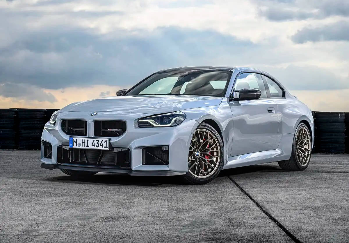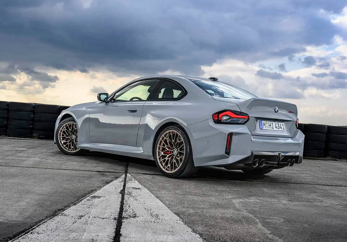 外觀方面,車輛前臉配備無格柵設計的創新雙腎進氣口(僅保留中央飾條),整體車輛的空氣動力學套件進行了全面強化,采用更加激進的前包圍設計。M2 CS通過多項輕量化進行車身減重,車輛后備廂采用碳纖維材質,并配備一體式的上翹鴨尾設計。車尾下方為雙邊共四出的排氣布局,搭配小擴散器造型,賽化屬性十足。此外,車輛還將配備M Power標志性的古銅色多條幅輪圈以及紅色制動卡鉗。