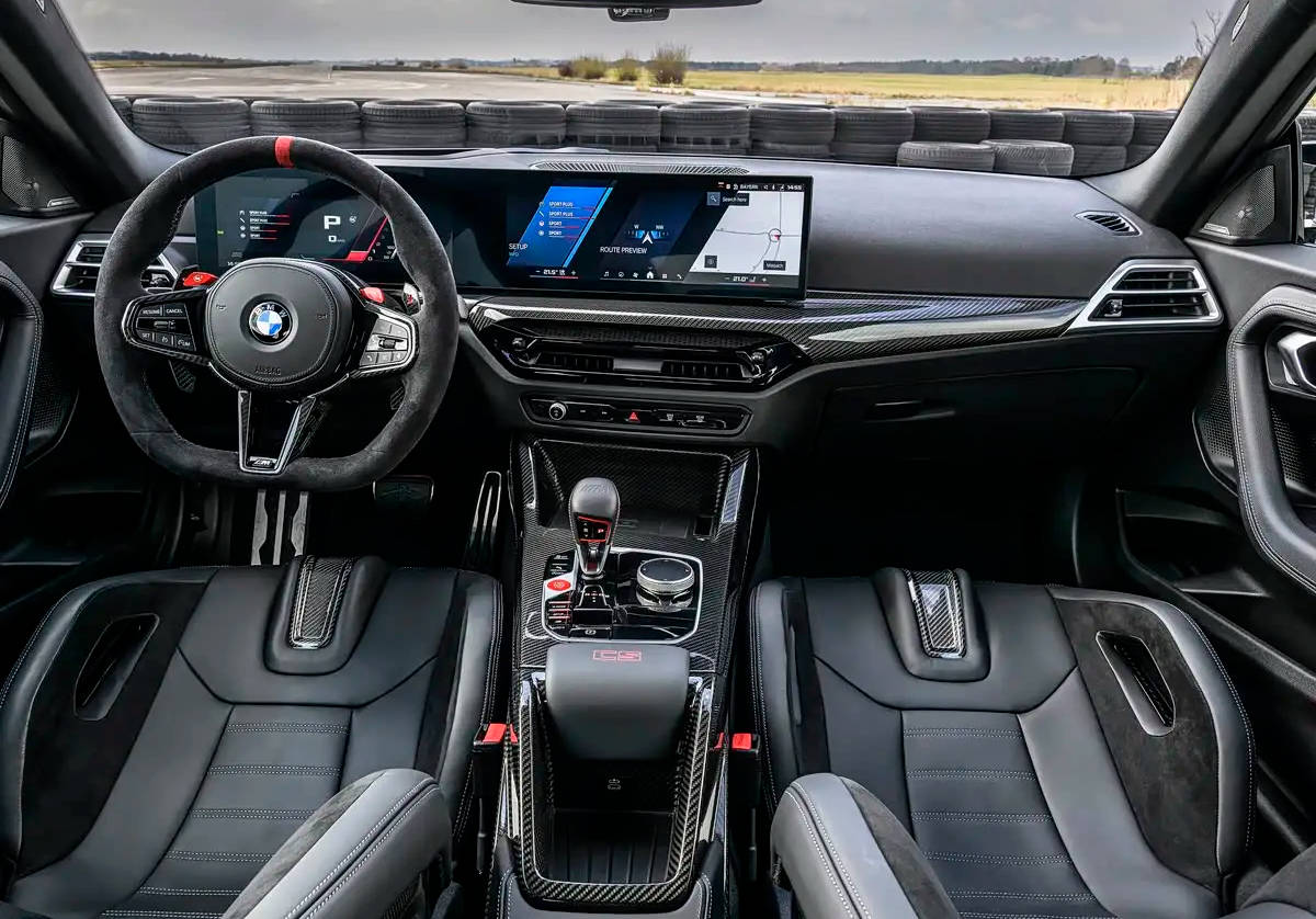 內飾方面,該車整體沿用寶馬家族式設計風格,包含貫穿式連屏等設計。同時,其車內整體被覆蓋較多的碳纖維材質以及Alcontara,配合藍紅縫線點綴的硬核賽道座椅,運動感拉滿。此外,官方還在車門揚聲器罩等處加入CS專屬標記,提升辨識度。據悉,全新寶馬M2 CS整備質量為3770磅(約合1.71噸),較前代減重近100磅(約45.36公斤)。動力方面,車輛將搭載3.0T雙渦輪增壓直列六缸發動機,其最大功率為530馬力,峰值扭矩為479牛米。