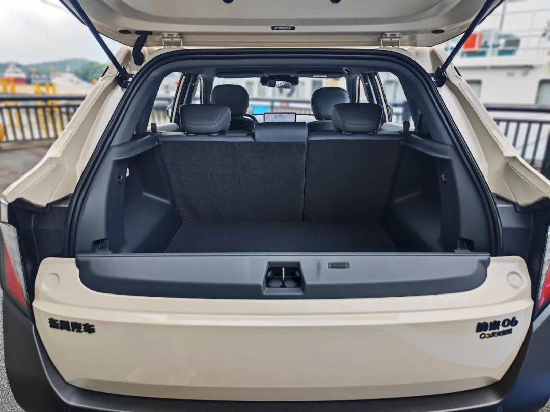 “天地門”等于把原本的長尾門分成上下兩塊,這樣上半部門面積變小,打開時所需的車后空間也更小,用戶基本就不太需要考慮停車時預留車后空間的問題了,并且我還發現,如果身上只是有一些小背包、小物品要放,我只需要打開納米06的上半部尾門,然后把東西往后備廂里一丟即可,很方便。還有,由于上半部門的尺寸小、重量輕,開啟至上止點的上翹角度不高,因此關閉時操作起來也很輕松省力,相信就算個子嬌小的女性用戶也能倍感貼心。