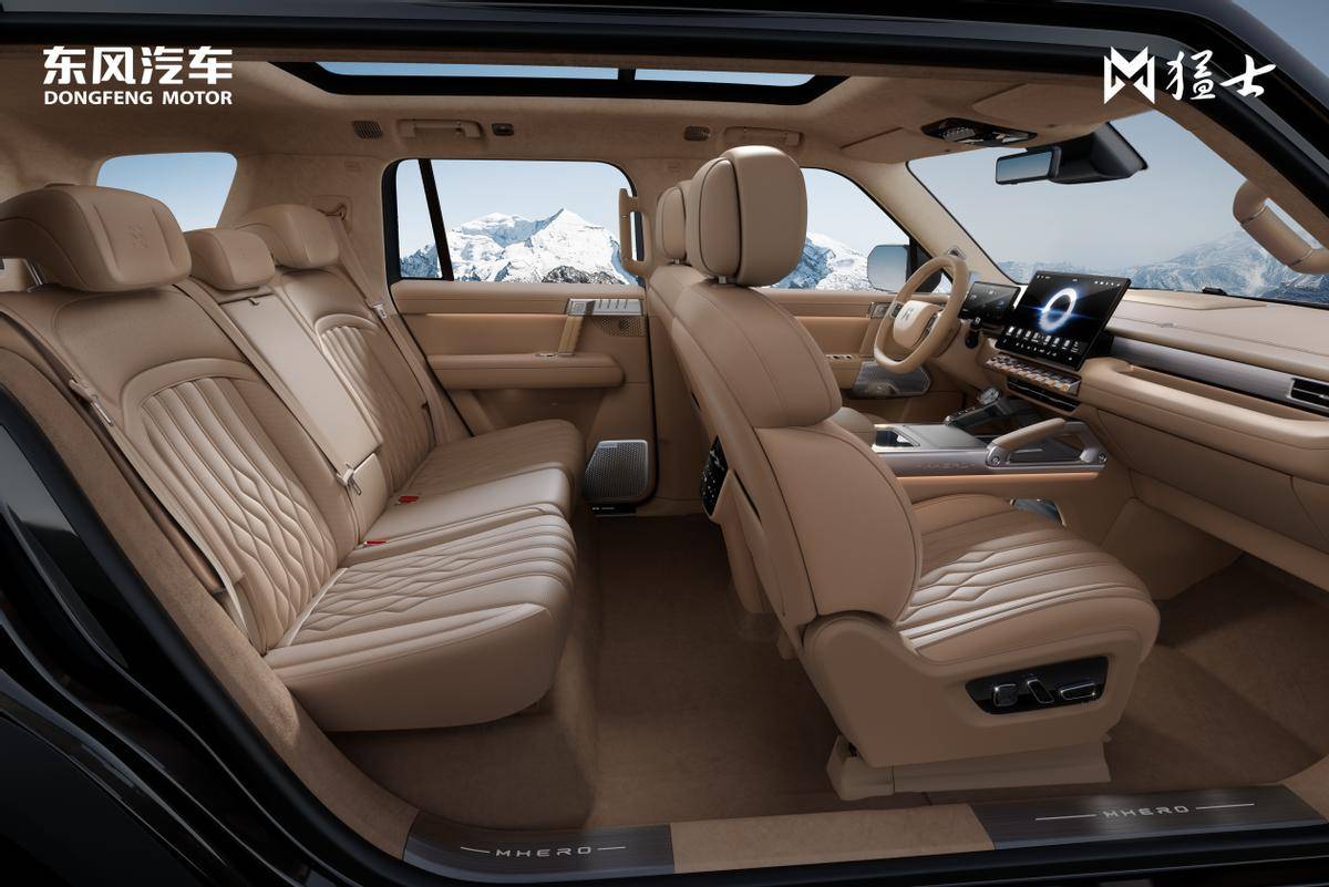 猛士M817首先打破了“硬派越野=簡陋工具車”的刻板印象。它用“雄魂美學2.0”重新書寫設計語言:車身如東方醒獅般充滿力量感,前大燈還原古代兵器“戈”的鋒芒,尾燈亮起時宛若利劍出鞘。坐進駕駛艙,大面積NAPPA真皮與金屬飾條的交織觸手可及,飛航式撥桿和潛水表式旋鈕帶來飛行器般的操控儀式感,256色呼吸氛圍燈在夜間勾勒出機械與科技的浪漫。六款國風車身色與三款東方意境內飾,讓野性外表下流淌著詩意的溫度。