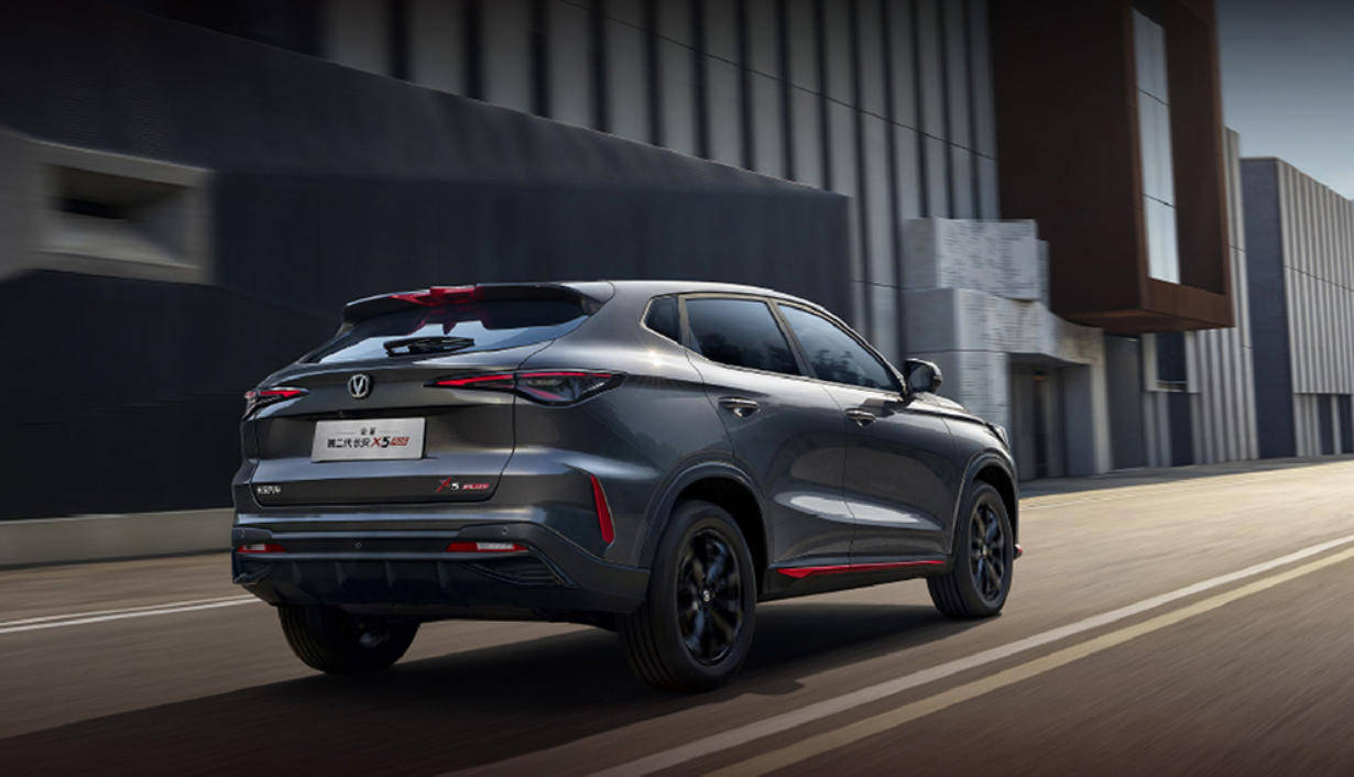 新車側面造型較為飽滿,分段式車側腰線搭配亮黑色輪眉組件運動感十足。另外,第二代長安X5 PLUS還對車窗邊框處進行熏黑處理。車尾部分,兩側造型銳利的LED尾燈組結合集成高位剎車燈的車頂擾流板組件和寬大的熏黑后包圍層次感、辨識度較強。尺寸方面,新車長寬高分別為4540/1860/1590(1620)mm,軸距為2715mm。