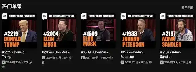 Joe Rogan視頻播客:對話特朗普、馬斯克等名人
