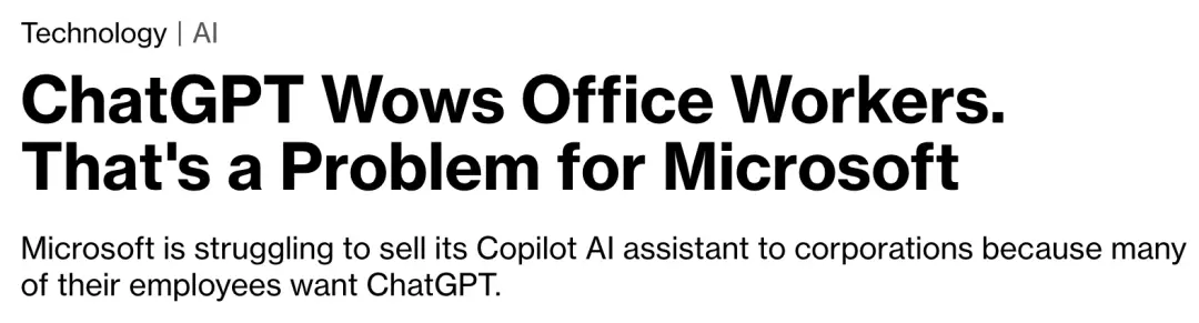就連微軟這樣的巨頭,辦公室員工在家用的都是ChatGPT。