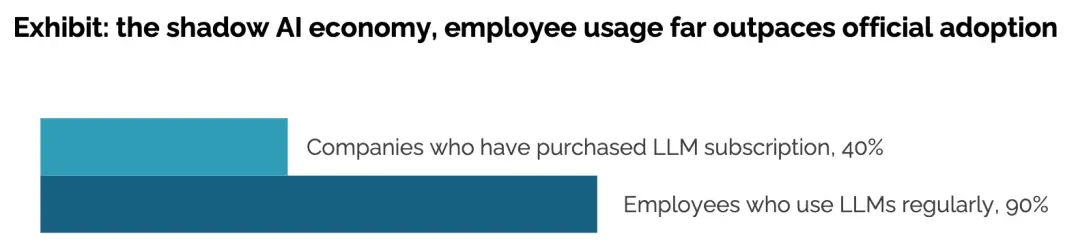 雖然40%的公司都訂閱了大模型服務,但90%的員工依然會選擇用「個人AI工具」悄悄干活!