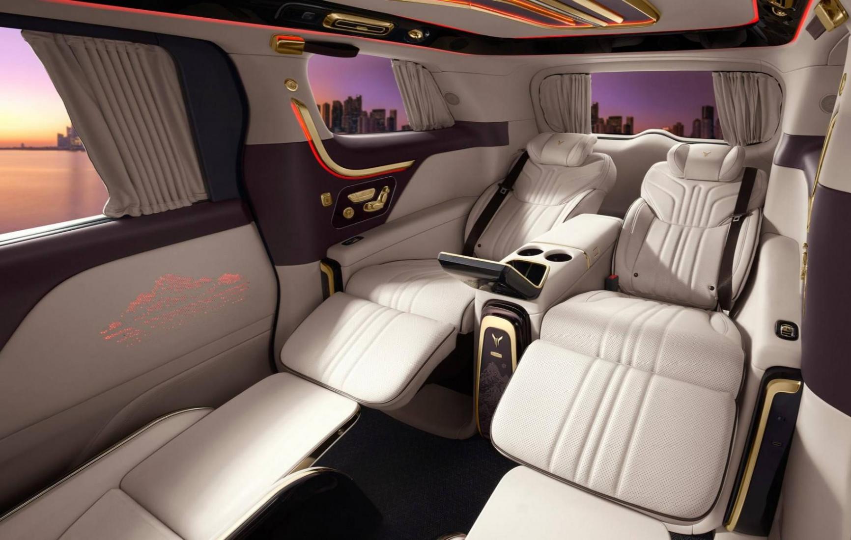 其實高端用戶對這類產品早就不陌生了,各種改裝商務車就不多說了,原廠四座高定版MPV也不稀奇,、別克世紀甚至傳祺M8都出過。它們的共同之處是徹底取消第三排座椅,同時將第二排座椅位置后移,配合功能更強大且能實現166度平躺的兩張全電調零重力座椅,帶來飛機頭等艙般的乘車體驗。