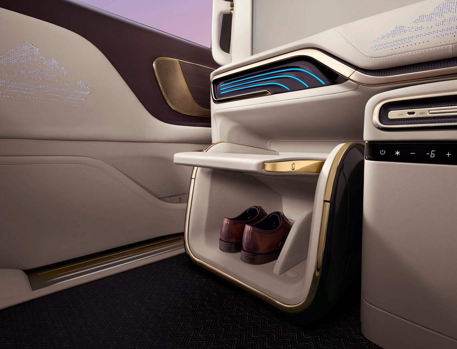 與此同時,前后艙之間的全隔斷智能云幕(50英寸屏幕)、加厚絨布的全車自動隱私簾實現了更好的私密性,冰箱、中島式電動鞋履倉等細節配置也進一步提升了用車便利性。