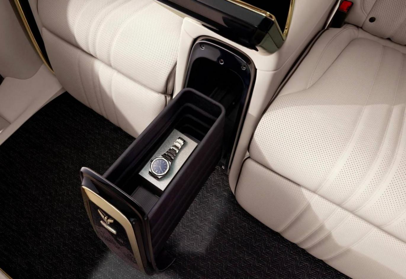 車門附近與勞斯萊斯異曲同工的內置長柄雨傘槽并不意外,但有一項配置你絕對沒想到——密碼保險箱,貴重物品和重要商業文件放在里面就踏實多了。圖9b