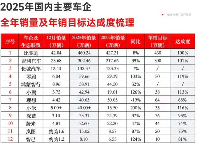 2025年12月份一結束,國內各大車企們就紛紛公布了12月份的銷量情況,以及2025年全年的銷售情況。