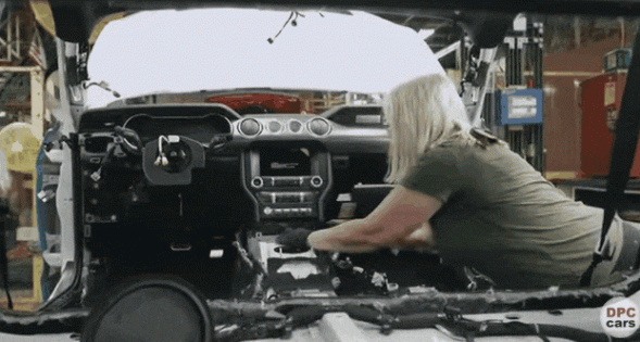 工人得從車里進進出出,方向盤、中控、地板啥的一個個弄上去,費時又費力。