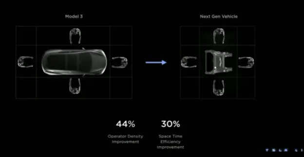 具體來說,就是把汽車的組裝分成三個大的模塊,最后再三合一。