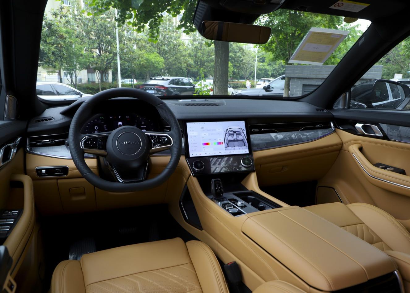 進入車內,新車雙拼色配色很豪華,中控臺與門板都是有著大面積的花紋飾板鑲嵌,尤其是配備有12.3英寸液晶儀表盤、12.8英寸全彩W-HUD抬頭顯示系統、12英寸中控屏幕+6英寸中控下屏,整體科技感營造的很出色,并且標配LYNK OS N智能座艙系統,搭載高通驍龍8155芯片,運行很流暢。而且新車還有著Bose定制音響系統、海洋之謎香氛系統、Nappa真皮座椅(前排座椅帶通風/按摩/加熱功能)、電動方向盤帶記憶功能、四溫區獨立空調系統等配置,進一步來增加新車的豪華氛圍。