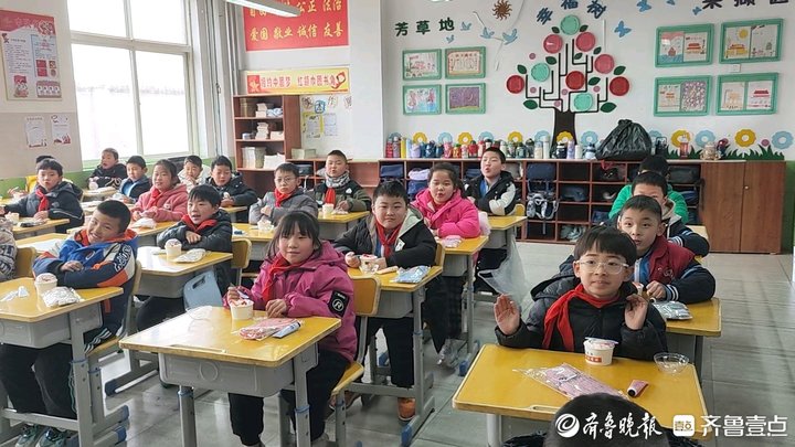 在六年級(jí)一班的教室里,孩子們品嘗著志愿者帶來的小蛋糕,甜甜的小蛋糕為他們帶來了冬日的溫暖。“謝謝叔叔,這個(gè)蛋糕真好吃!”孩子們笑著對(duì)志愿者說。