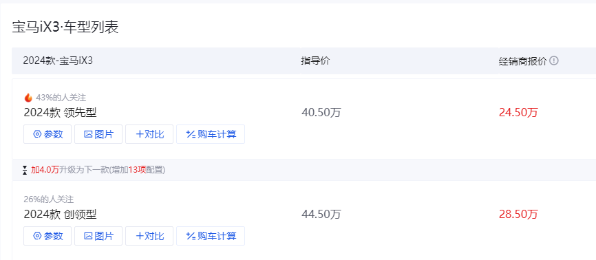 相比國產品牌在新能源領域的快速發展,豪華品牌的轉型進度要偏慢一些,尤其是在新車規劃上相對落后。近期有消息曝出,現款的寶馬iX3將于25年3月全面停產,而基于Neue Klasse架構進行打造的全新車型將在26年才會入華,空檔期也帶來了現款車型較大的優惠力度,根據懂車帝數據,目前全系優惠達16萬,那此時是入手iX3的好時機嗎?
